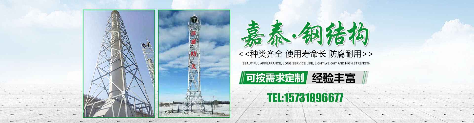 衡水嘉泰鋼結(jié)構(gòu)有限公司位于鐵塔制造之鄉(xiāng)-衡水市景縣廣川經(jīng)濟開發(fā)區(qū),石德、京九鐵路交匯處,距北京、天津、石家莊、濟南均在2小 時交通圈內(nèi),交通便利。公司主要產(chǎn)品有:避雷塔、監(jiān)控塔、瞭望塔、消防訓(xùn)練塔、電力架構(gòu)、樓頂工藝塔、廣播電視塔、煙囪塔、測風(fēng)塔 、電力塔、單管塔、雷達塔、仿生樹塔、氣象觀測塔、路燈桿,一體化基站、ETC龍門架等,是一家集設(shè)計,生產(chǎn),運輸,安裝,維護為一體的廠家。主要服務(wù)于鐵塔公司、通信三大運營商、國防通訊,鐵路及森 ......
